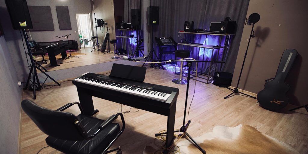 Компьютеры и программное обеспечение для записи и редактирования музыкального материала.
