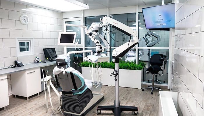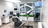 Есть ресепшн, кухня, раздевалка, коридор со шкафами, большой кабинет на 2 рабочих кресла, рентген кабинет, комната-лаборатория зуботехника, стерилизационная.