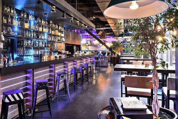 -2 зала, 1 с большой барной стойкой и посадочными местами.