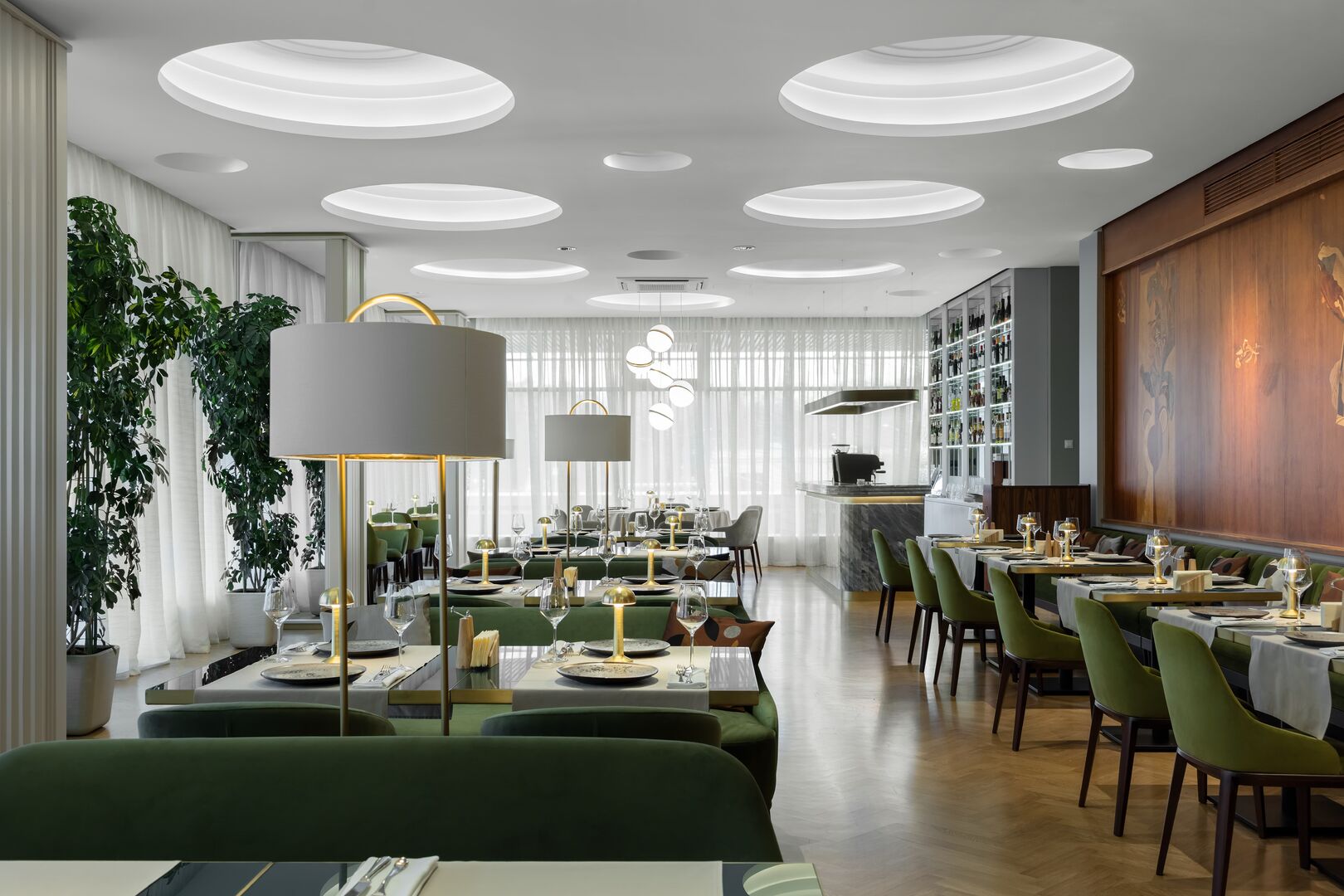 В помещении проведены коммуникации, в том числе установлен потолочный кондиционер, мощная вытяжка и система видеонаблюдения. Кухня оборудована итальянским оборудованием Unox.