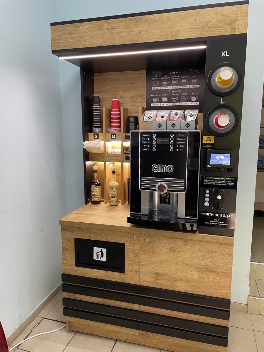 - 6 работающих стоек самообслуживания (кофемашины в аренде).