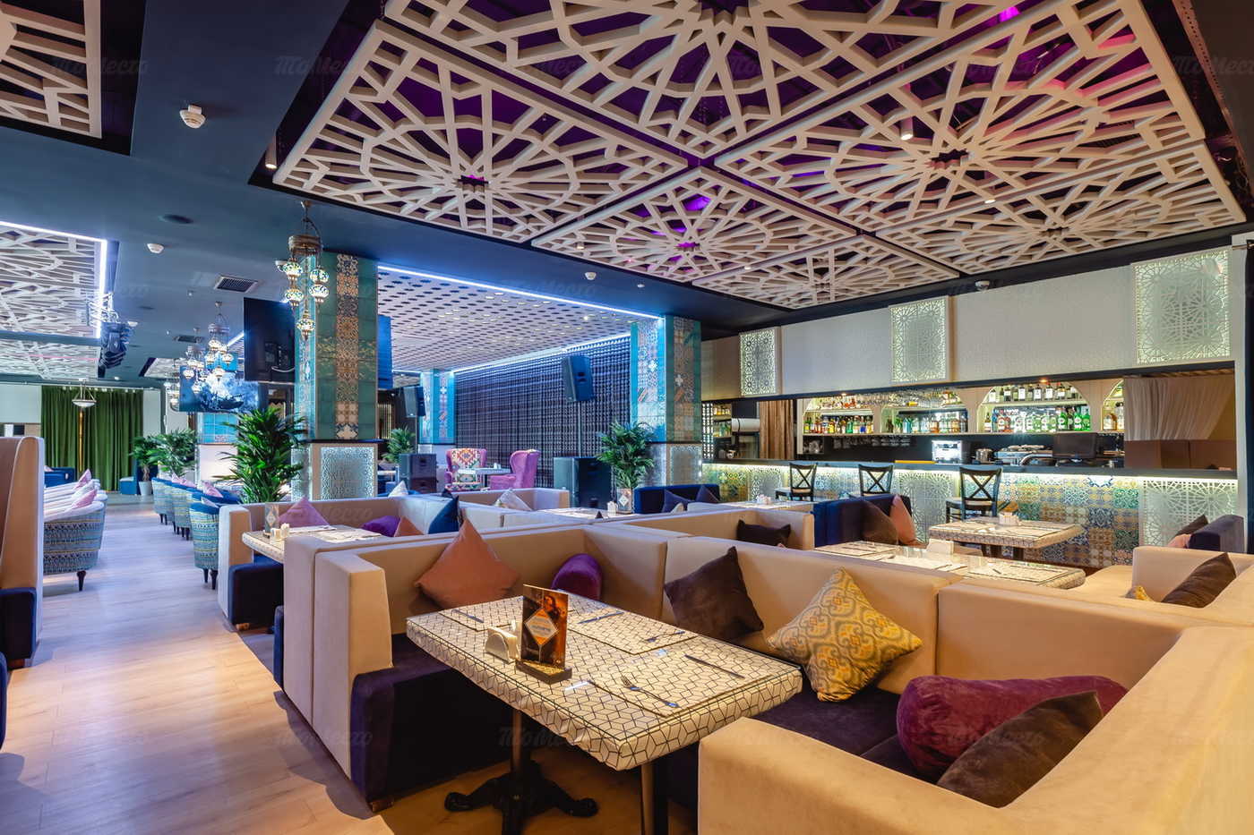 Заведение разделено на две зоны: лаунж-зону и ресторан.