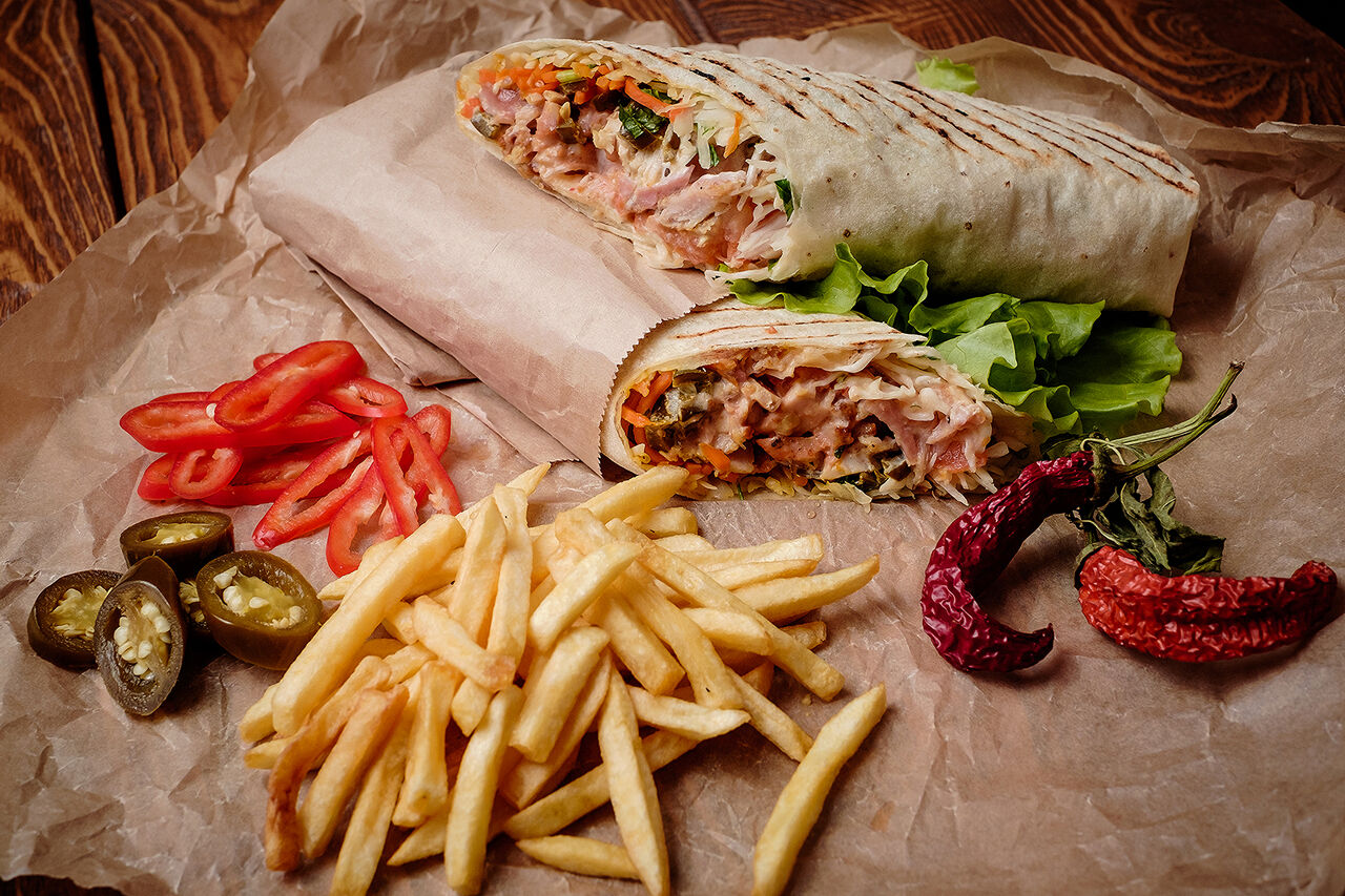 Представлен широкий ассортимент: шаурма, бургеры, обеды, пиво, кофе.