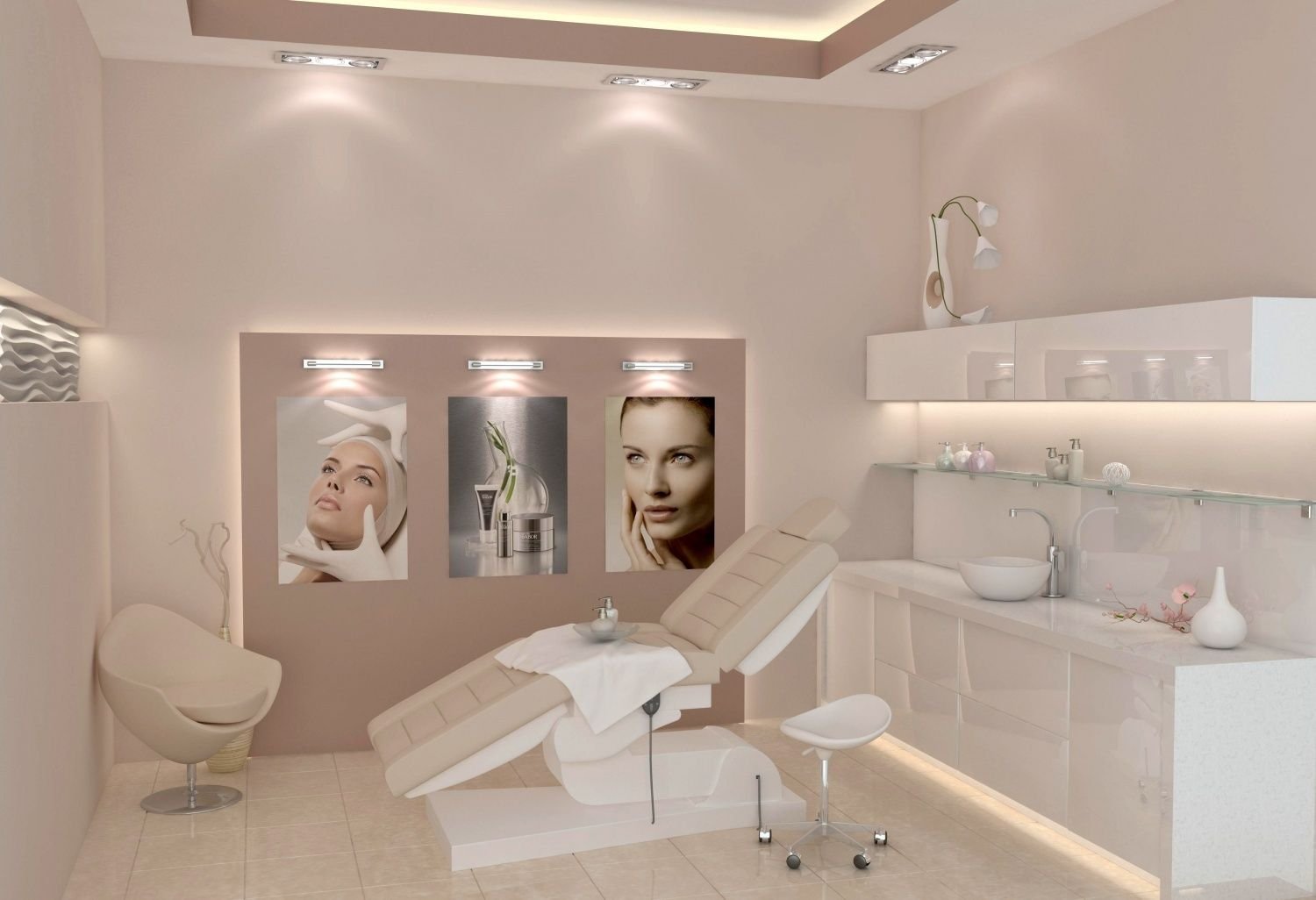 В кабинете имеются: кушетка, столик для мастера, лампа-лупа, стулья для мастера и клиента, шкафчики и полки для препаратов, шкаф для сменной одежды, столешница, полочки, декор, магнитофон, чайник и прочих мелочей.