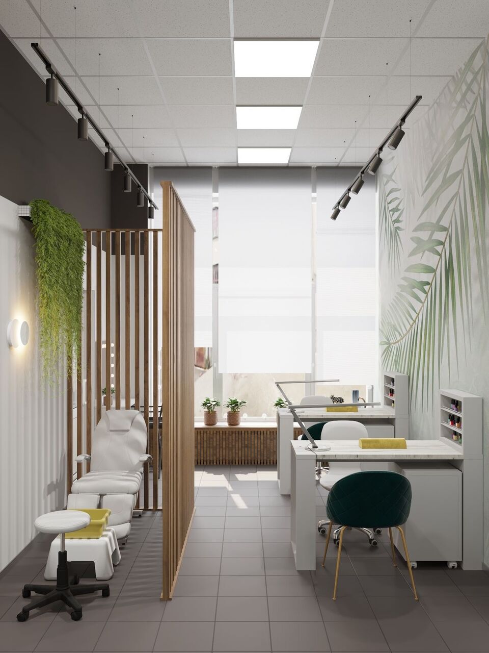 Оборудованы 6 рабочих мест: 4 места для маникюра, 1 кресло для педикюра и 1 место для бровей.