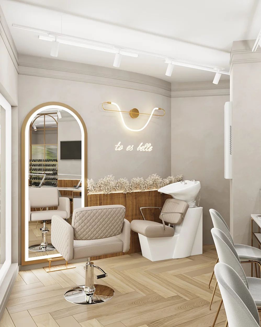 Есть 2 парикмахерских кресла, стол для маникюра и кресло для педикюра.