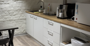 Есть ресепшн, зона ожидания, подсобное помещение, комната персонала, рабочие кабинеты.