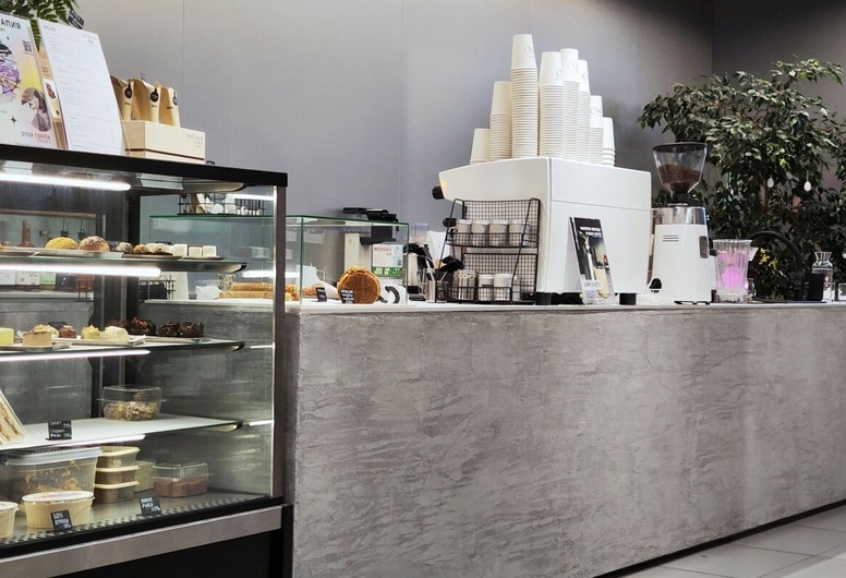 Вход в кофейню находится рядом со входом в продуктовый магазин, создавая поток потенциальных клиентов. Конкуренция рядом отсутствует.