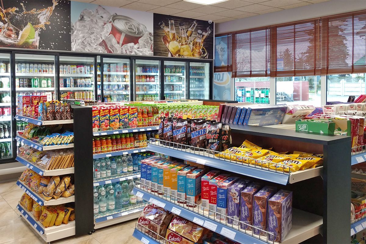 Торговое оборудование, полки, стеллажи, холодильники, морозильники, касса и пр. в отличном техническом состоянии.