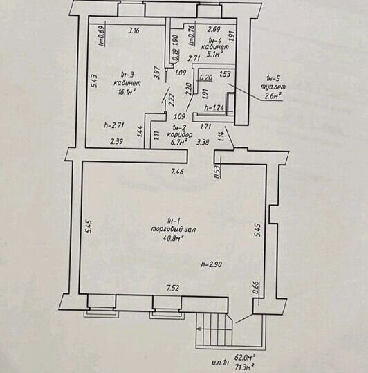 В продаже административно-торговое помещение общей площадью 71,3 м2.