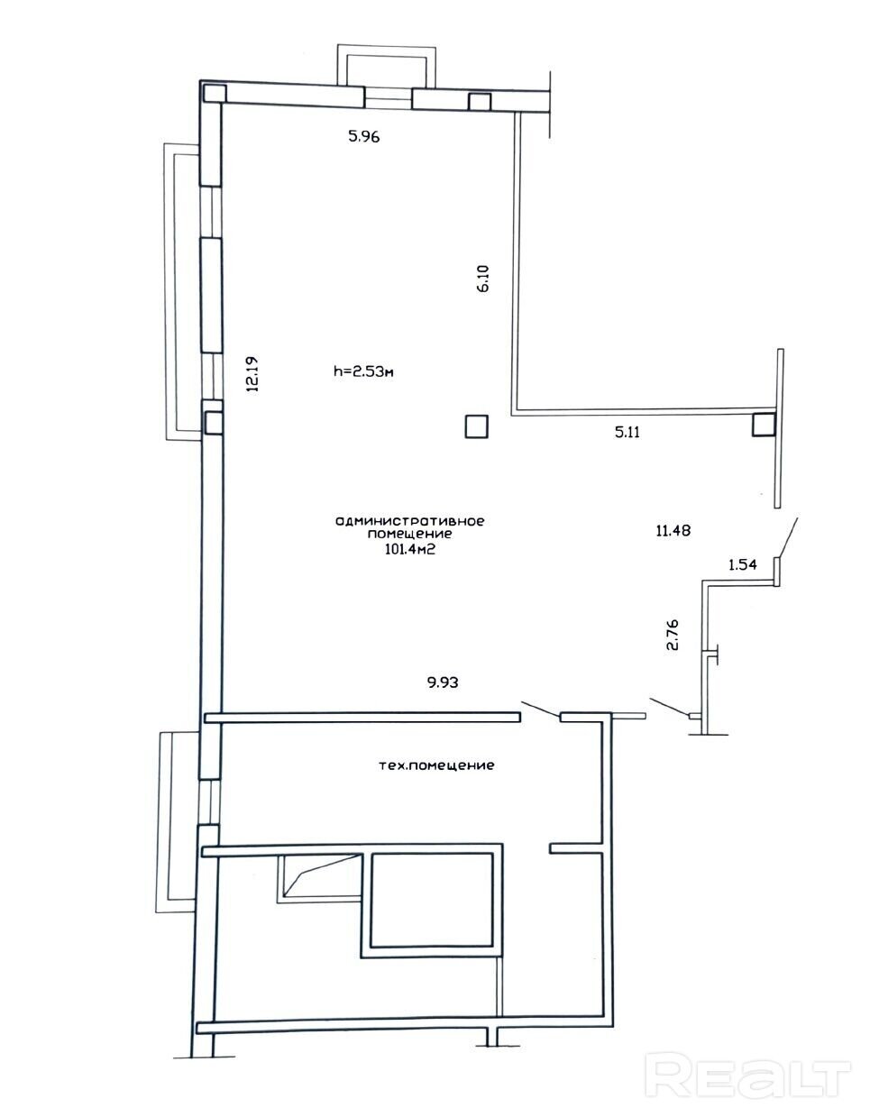 Помещение площадью 101 м2 располагается на 1-м этаже большого жилого дома, по адресу ул. Независимости 85 Б.
